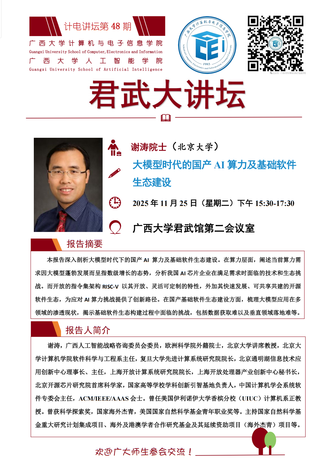 君武大讲坛、“计电讲坛”学术报告系列活动第48期:大模型时代的国产AI算力及基础软件生态建设