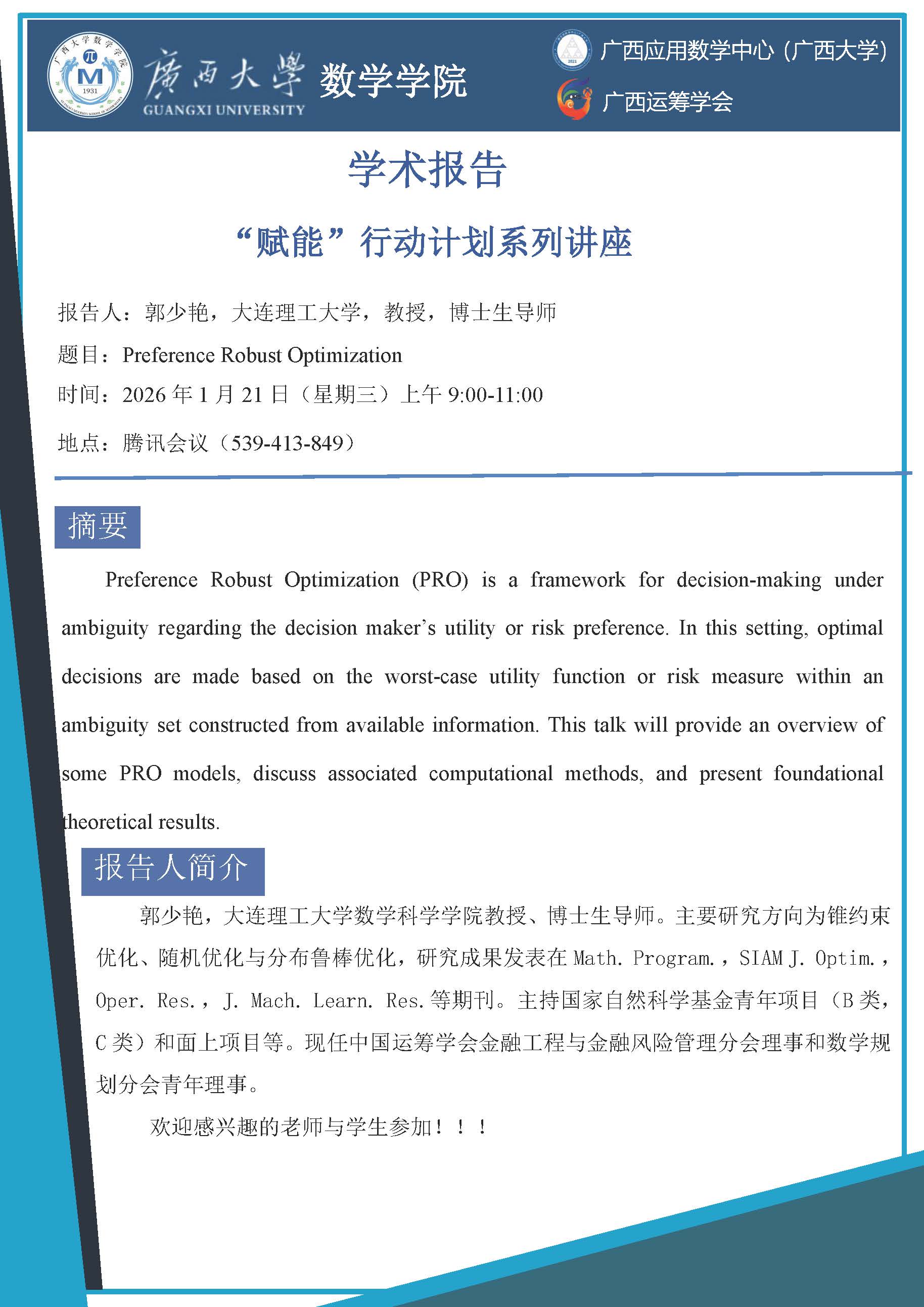 数学学院学术报告:Preference Robust Optimization