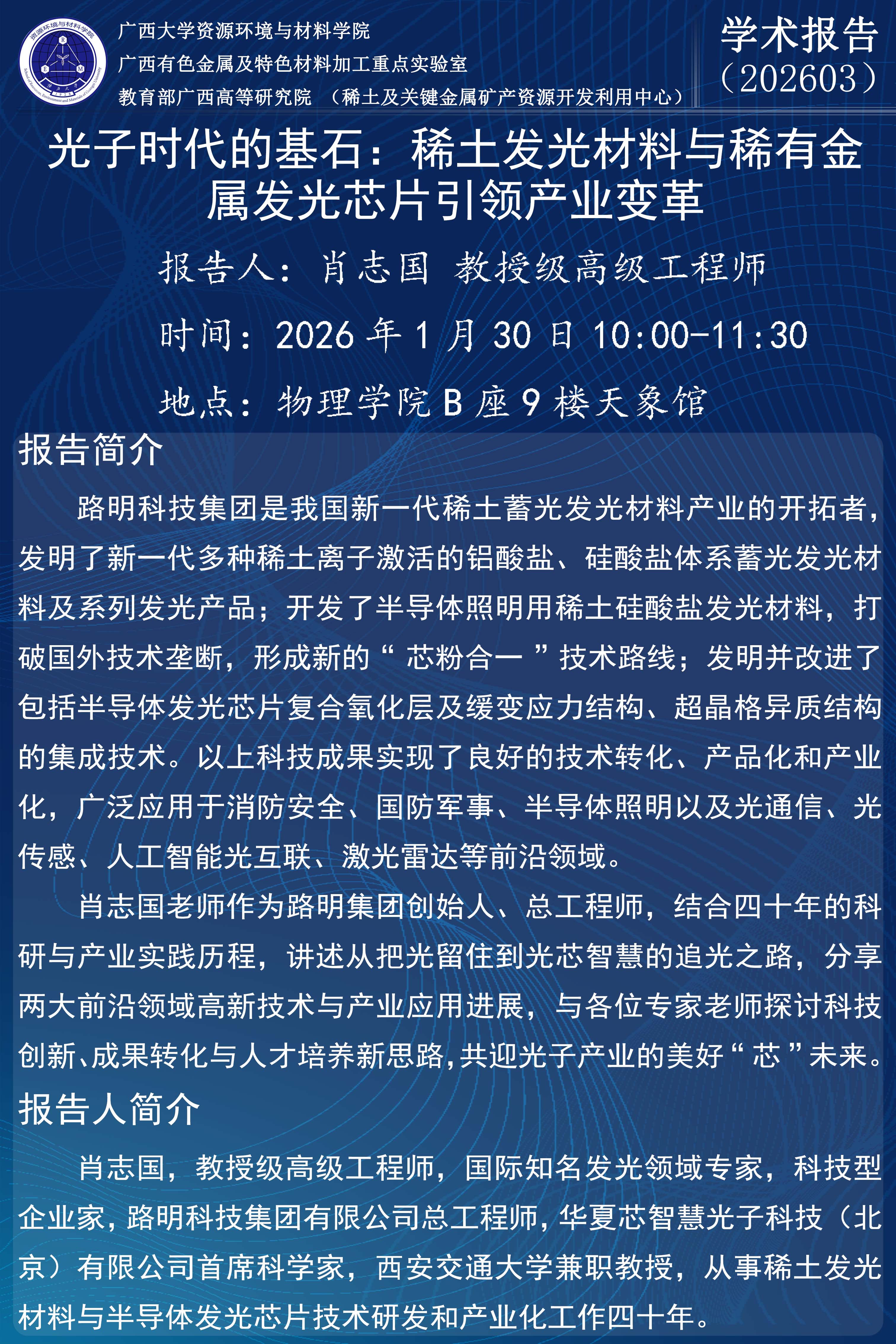 资源环境与材料学院学术报告:稀土发光材料与稀有金属发光芯片引领产业变革