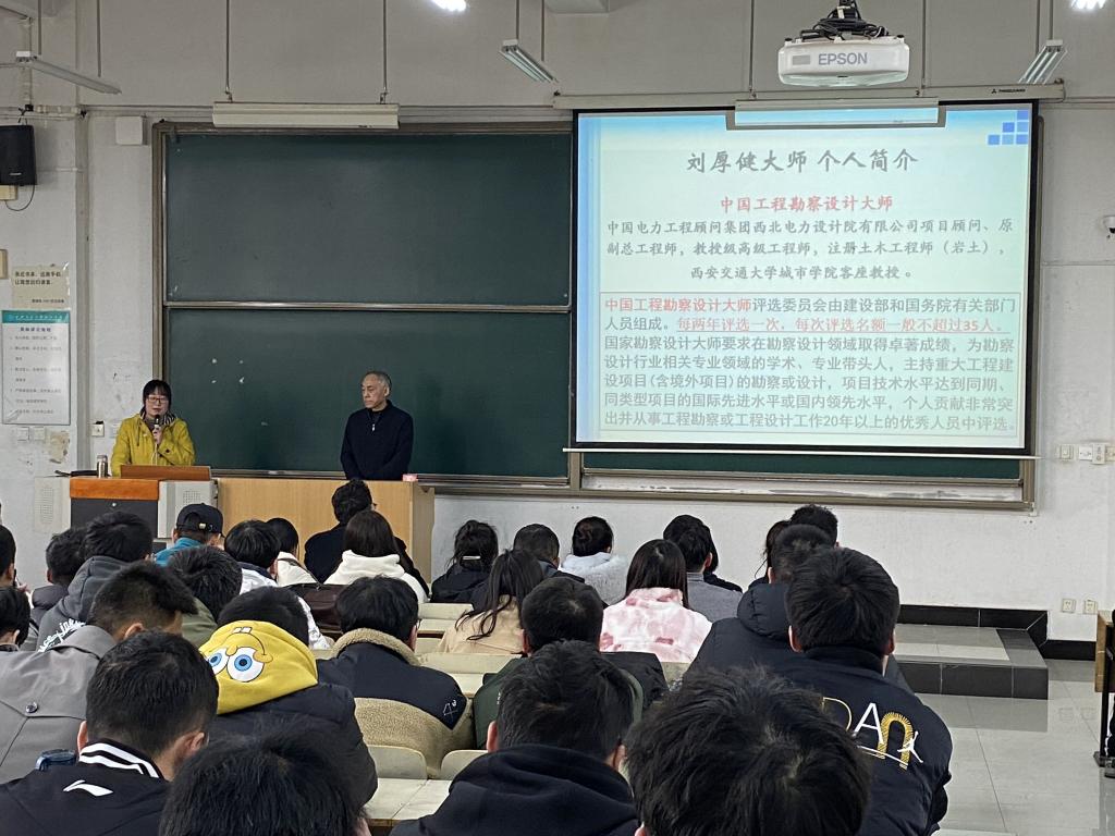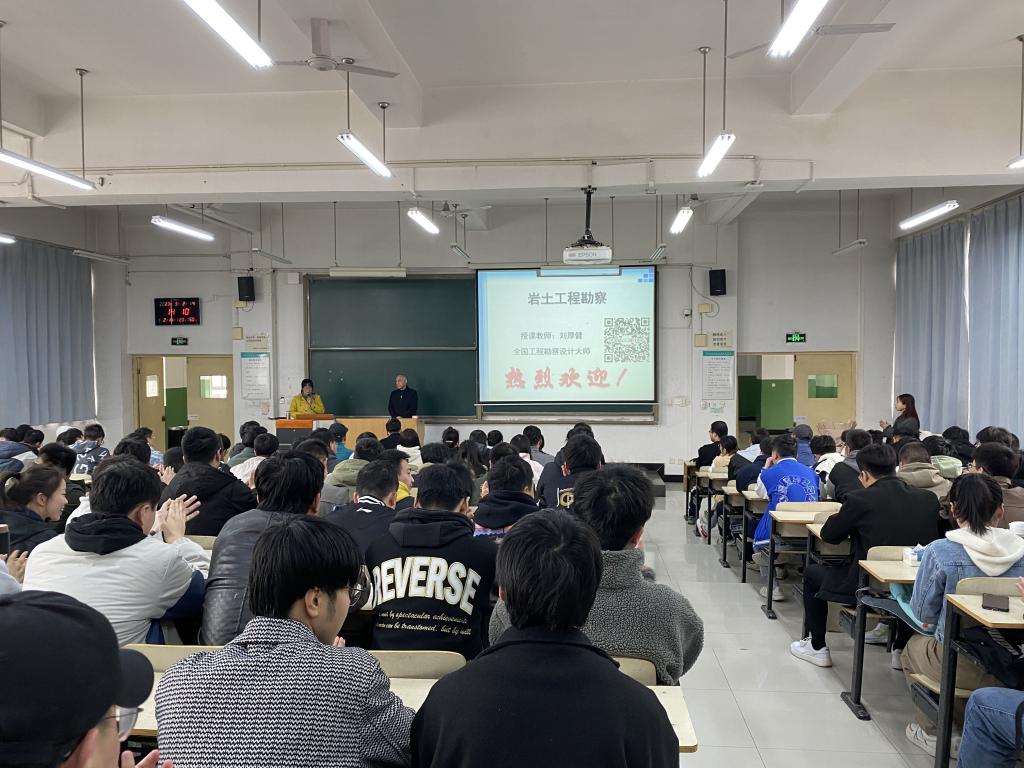 为更好提升专业人才培养质量,推进学科交叉融合创新,深化新时代工程应用型人才培养内涵,土建系在2020版培养方案中新增交叉学科选修课程《岩土工程勘察》,邀请全国工程勘察大师、教授级高级工程师、suncitygroup太阳成集团客座教授刘厚健作为主讲教师。 在课堂中,刘教授首先以西安城墙、青藏铁路、秦岭隧道和上海金融中心等中国著名工程为例,讲述了土木工程在社会发展进程中凸显的重要地位和意义,在课程讲授中向学生传达作为一名土木工程师必备的专业素养,向学生展示了“课堂所学”与“工作所用”之间的联系,指出专业课程设置是多年的积累和社会反馈。刘教授的课程深入浅出,理论结合实际,将岩土工程勘察和土木工程建设有机融合,在授课过程中,刘教授还勉励学生认真学习专业知识,励志成才,学生认真听讲,不时为刘教授送上热烈的掌声。