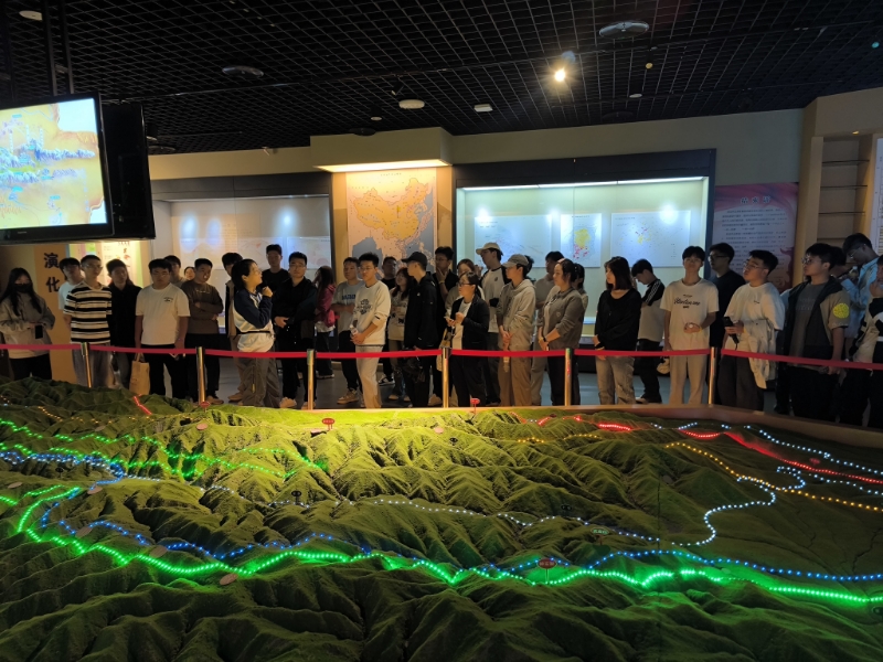 在地球馆,师生重点参观学习了秦岭造山带五套典型岩层与鄂尔多斯盆地砂岩组构,还观察了花岗岩、大理岩等岩石矿物的节理发育特征,将《工程地质》课程中的“莫霍面”“断层识别”等抽象概念转化为可触、可测、可量的技术参数。三维动态沙盘实时模拟板块碰撞—褶皱隆升—剥蚀夷平全过程,帮助学生建立“岩土特性—地质构造—工程选址”的立体知识链。
