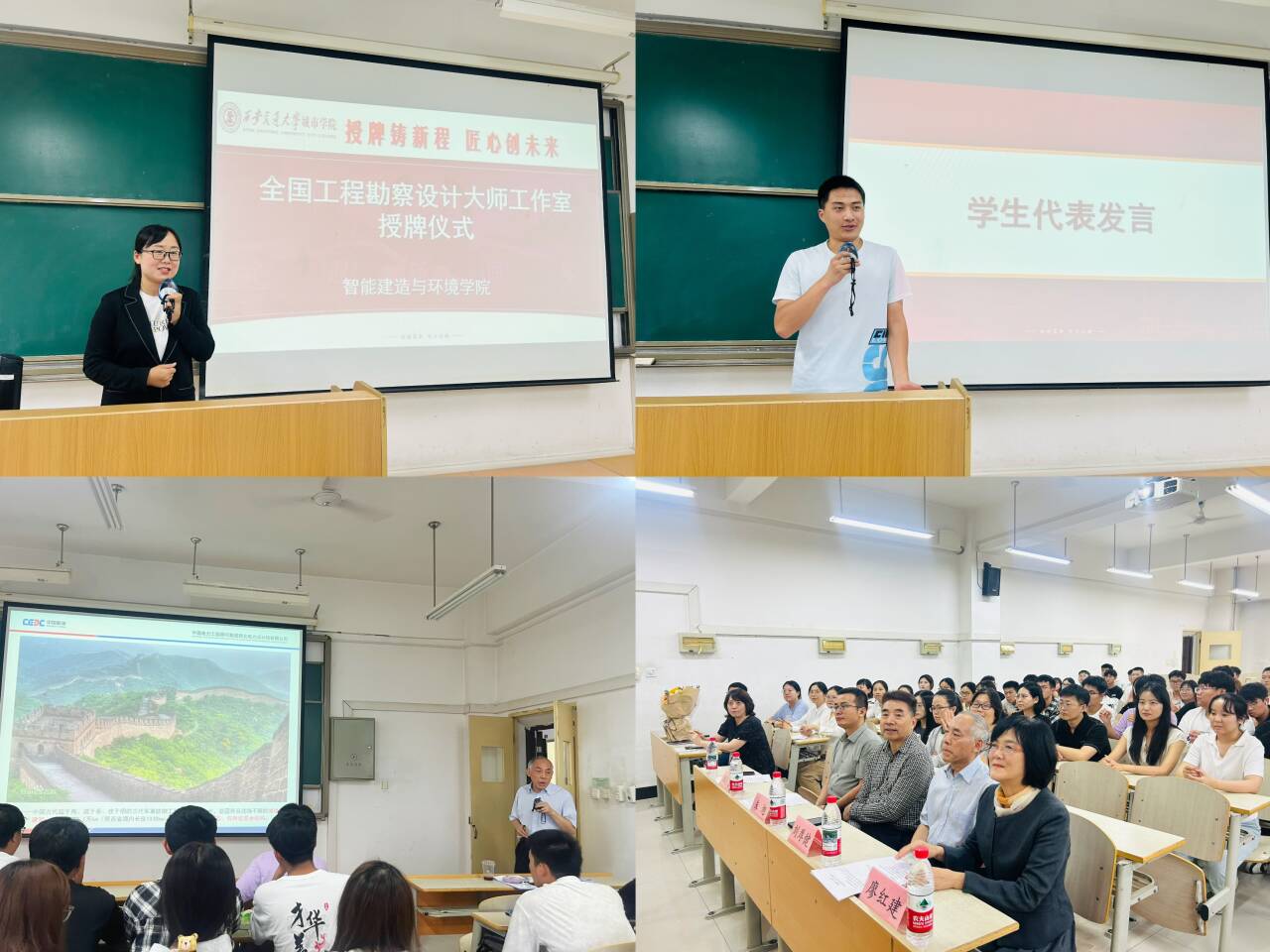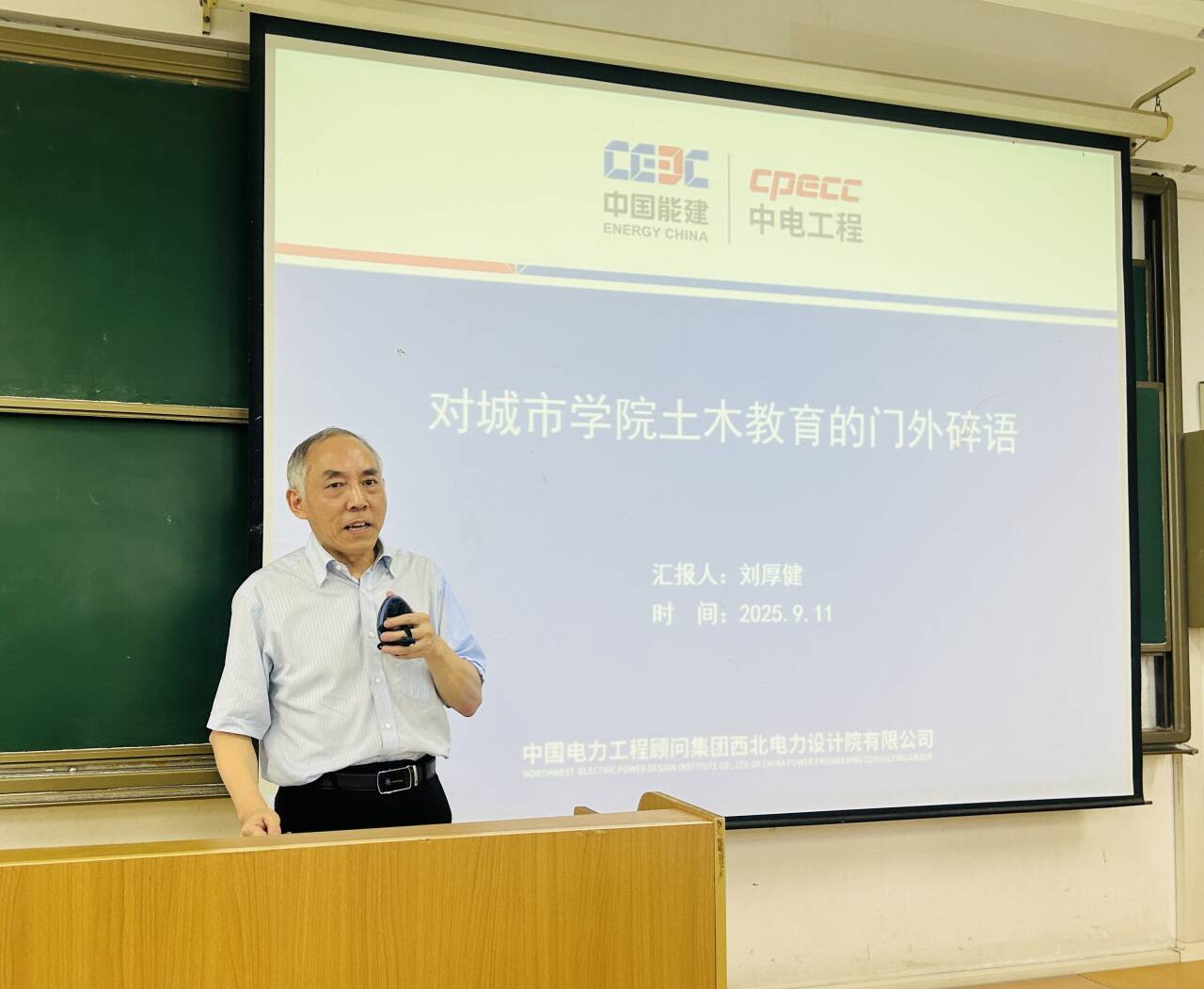 2025年9月11日下午,suncitygroup太阳成集团suncitygroup太阳成集团在教A303举行了一场别开生面的“全国工程勘察设计大师工作室”授牌仪式。我校客座教授、全国工程勘察设计大师、中国电力工程顾问集团西北电力设计院有限公司高级顾问、教授级高级工程师刘厚健教授,在给智建学院新生讲授第一堂专业概论“大师课堂”品牌课后举行。校领导朱旭副校长,校长助理、行政人事部部长姬志国、智建学院院长廖红建及师生代表出席仪式,共同见证这一时刻。这是我院践行学校双师共育、深化产教融合、推进校地合作和产学研的重要举措。