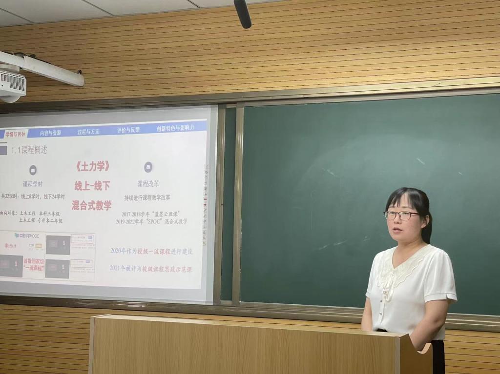 随后,电信系谭亚丽以《课堂教学创新的几点体会》为题,结合自身进行的教学创新,深刻阐释了教师对于教学要做到奔赴热爱、坚持不懈、勇于创新、取长补短、同心协力;计算机系范丽亚以《科学研究从“0”到“1”怎么突破》为题,以自身科研成长道路为媒,分享了科研突破的过程、方法、路径以及经验;土建系黎莹交流了《土力学》线上线下混合式教学的方法、内涵、设计、效果评价以及创新特色;土建系张瑜分享了《BIM设计创新实验》的课程建设及成果展示;土建系白梦梦进行了《分体式空调制冷原理》的课堂教学展示。