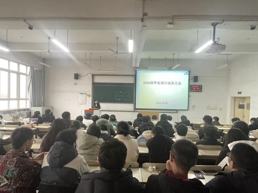 黎莹老师就2024届毕业设计(论文)工作作了动员讲话,她指出毕业设计(论文)是实现培养目标的重要教学环节,是教育与生产劳动和社会实践相结合的重要体现,是培养大学生的创新能力、实践能力和创业精神的重要环节。接着,黎老师对毕业设计的工作内容、关键时间节点及注意事项进行细致说明,要求学生能够全面运用所学知识,主动查阅文献,严格遵守毕业设计的格式规范,做到认真撰写、诚信撰写,坚决杜绝抄袭等一切学术不端行为。希望毕业生一定要从思想、行动重视,脚踏实地完成自己的毕业设计。