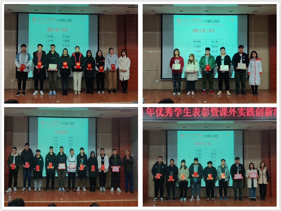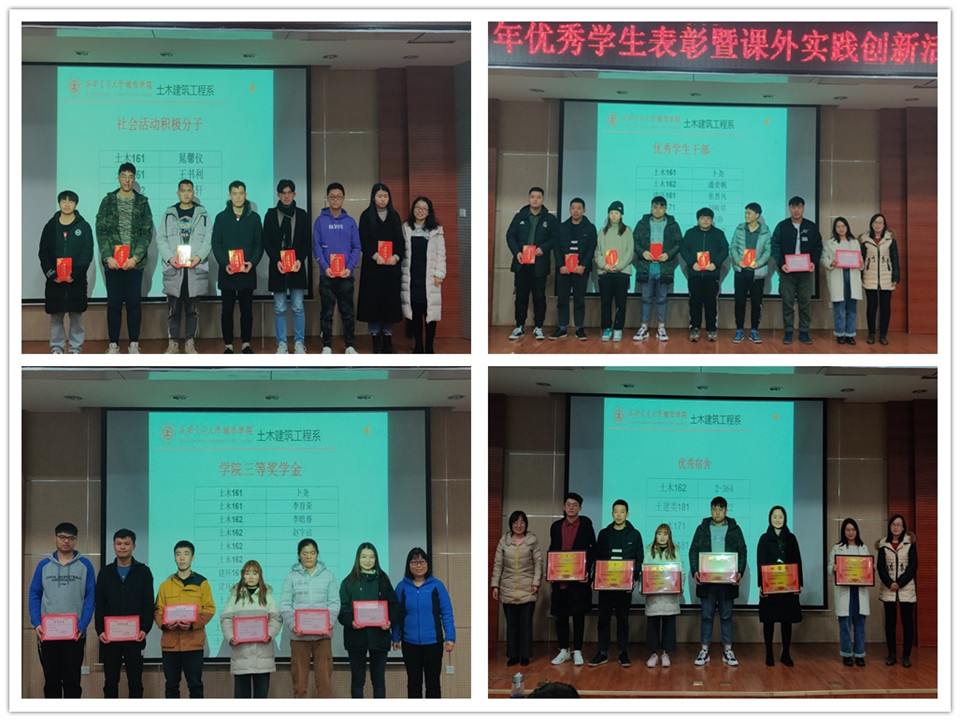 12月17日下午,土木建筑工程系在F100报告厅举行2019年优秀学生表彰暨寒假课外实践创新活动部署大会,系主任廖红建教授,主任助理康彦青老师、黎莹老师及全系教职工出席参加,共同为各类获奖学生颁发荣誉证书和奖牌,同时,大会就大学生创新创业竞赛和寒假建筑摄影比赛两项工作向全体师生进行了安排部署,大会由系学生主管牛彦龙老师主持。
