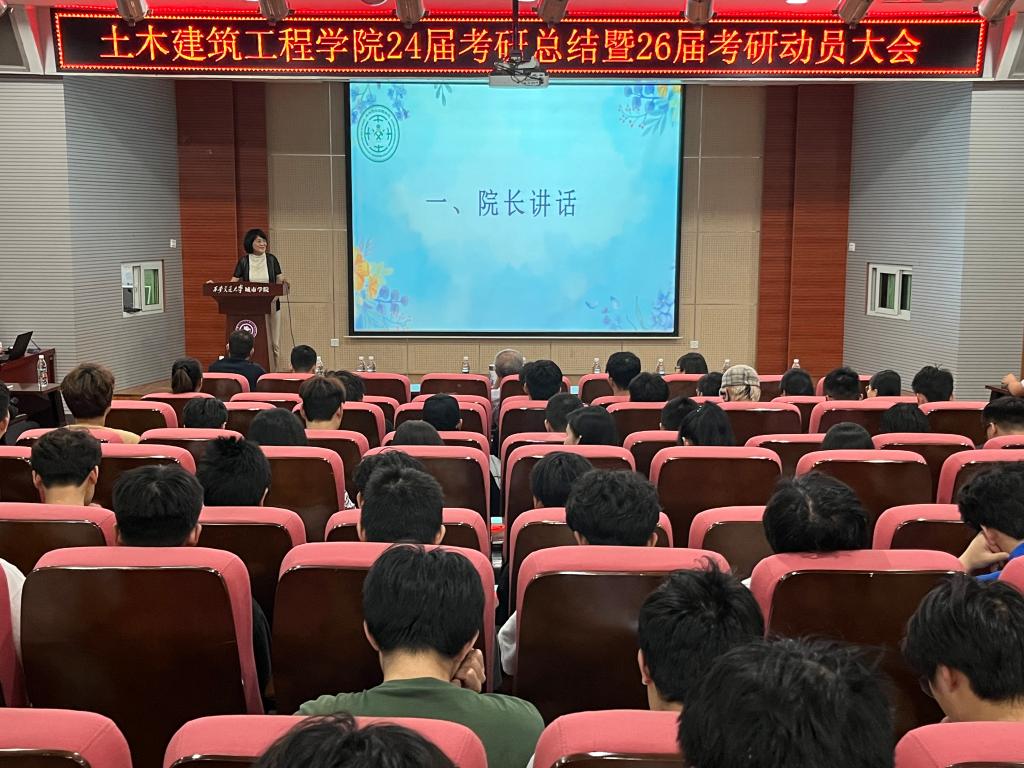 为充分调动学生的考研积极性,帮助学生了解考研形势,明确考研目标,增强考研信心。土木建筑工程学院于5月13日在F100开展了“‘研’途有你,踔厉同行”24届考研总结暨26届考研动员大会。土木建筑工程学院院长廖红建、副院长黎莹,专业教学督导专家凌伟、教工党支部书记郭秀芹、学生工作负责人李辉及各位班主任、辅导员、2026届有意向备考研究生考试的同学参加了本次讲座。本次大会由何佳兴同学主持。