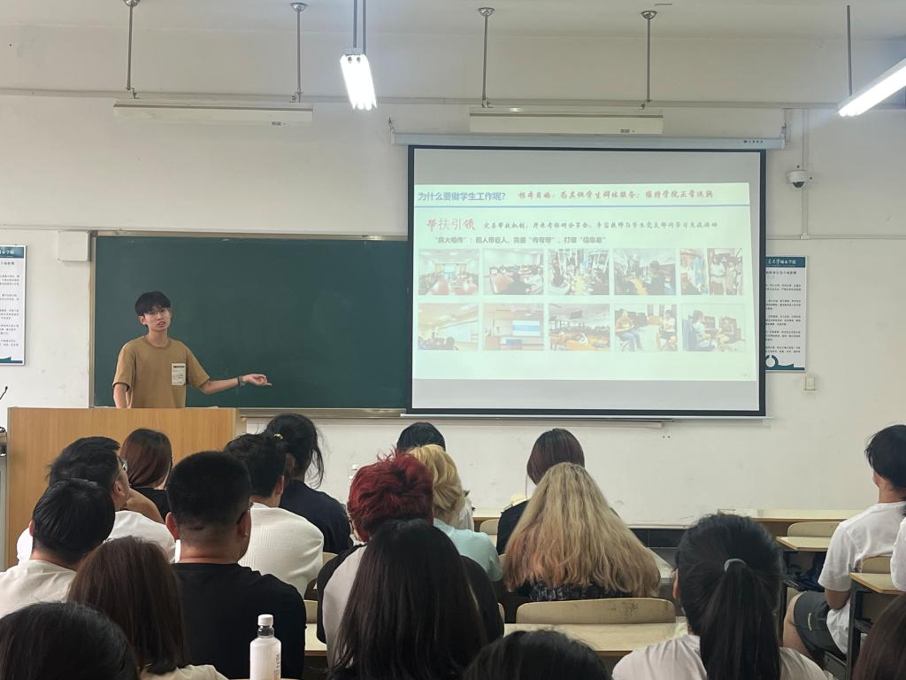 两位同学就学习方法及大学生活经验进行了分享。他们鼓励同学们要敢于去尝试,大学有很多机会去展现自己,要勇敢地去尝试一切,结果并不重要。只要尝试了,便是一次新的进步。