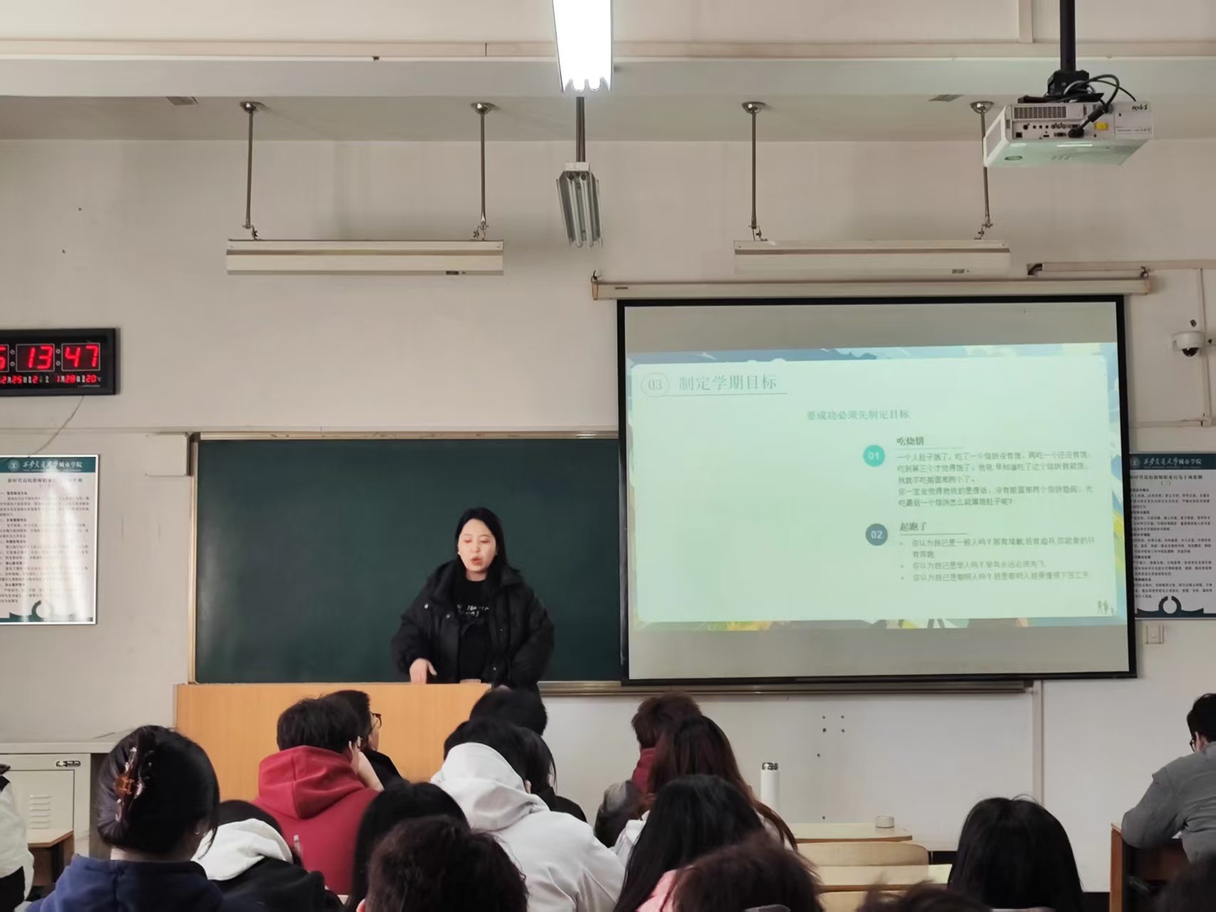 其次强调学业是大学生的首要任务,通过回顾上学期班级取得的成绩,同时对同学们在假期中的社会实践、学习成果表示肯定,要求同学们对标先进补短板,呼吁大家尽快收心归位,引导同学们及时调整作息,明确本学期的教学安排,上好开学“第一课”,积极参与课堂互动,主动交流,提高学习效率。同时,针对考研、就业等不同发展方向,提供相关建议和资源,引导同学们根据自身情况,明确目标,合理规划学业路径,着眼长远人生,把握竞争主动。