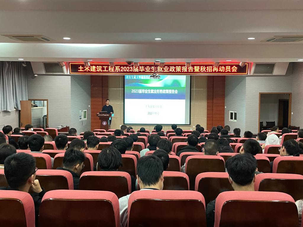 11月18日中午,土木建筑工程系在F100报告厅召开2023届毕业生就业政策形势报告暨秋招再动员大会,系副主任、建环专业负责人康彦青,系主任助理、土木工程专业负责人黎莹,毕业班班主任代倩、戴世安、孙雨斐以及全体毕业生参加了会议,会议由系主任助理、学工负责人牛彦龙主持。