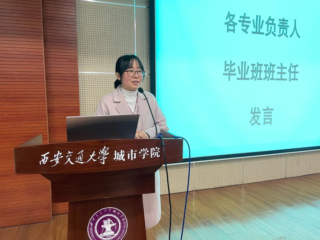 接着,康彦青副教授与黎莹副教授分别进行了就业动员讲话。康老师指出,建筑类相关专业在当前仍有就业优势,且就业面较为广泛,从专业角度为大家指出了多种就业渠道和领域,鼓励大家把握好核心竞争力,确定职业理想,了解职位要求,抓住秋招机遇,积极参与各类线下和线上应聘活动,找到自己满意的工作。黎老师则结合个人经历与实际案例,重点强调了符合实际的职业规划在个人整个职业发展期的重要作用,她指出在职业发展初期应以经验积累和能力提升为主,不应过度追求单位的知名度和影响力,大学生应结合当前的实际情况,先就业,再择业,选择合适的平台不断加强专业技能的提升,积极考取专业技能资格证书,为长远的发展奠定坚实的基础。最后,毕业班班主任老师们与大家进行了互动交流,鼓励同学们树立自信,及时分析就业形势和政策,积极响应号召,师生协同努力,早日落实就业去向。