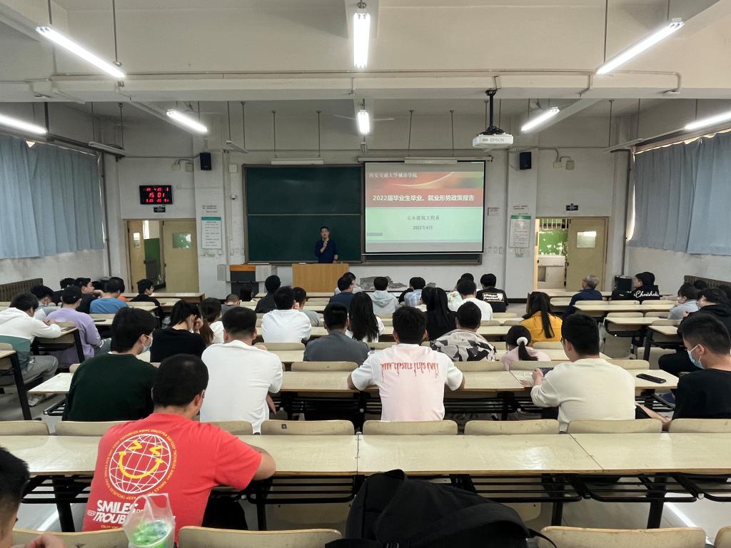 为加强2022届毕业生的就业教育引导,学习与落实国家、省市及学院近期出台的各项工作要求与就业政策,促进毕业生更加充分更高质量就业,土木建筑工程系于4月20日下午在B100教室和腾讯会议在线同步举行了本学期第二场就业形势政策专场报告与宣讲。系主任助理、系专业负责人、学工负责人、毕业班班主任、辅导员在现场与部分毕业生一起参加了宣讲学习活动。