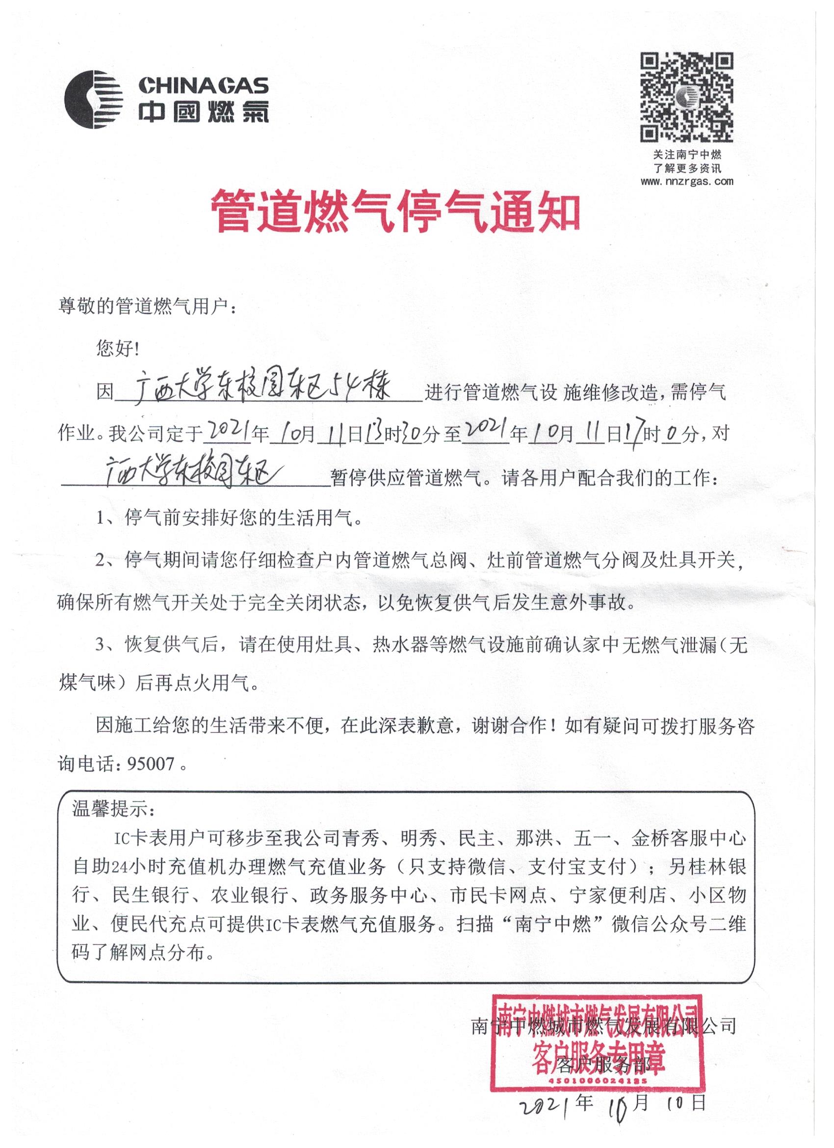 管道燃气停气通知